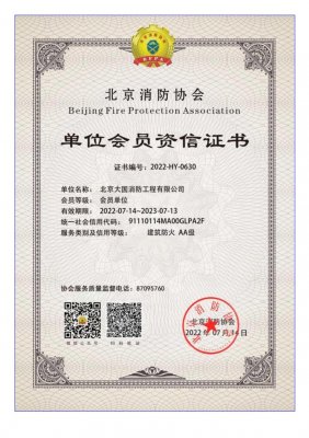 北京消防協(xié)會(huì) 單位會(huì)員資質(zhì)證書(shū)